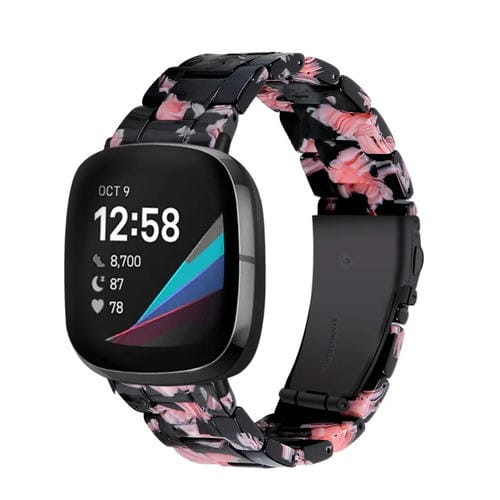 Pulsera Universal Resin para Fitbit Versa 3 y Sense (Black Pink Flower)