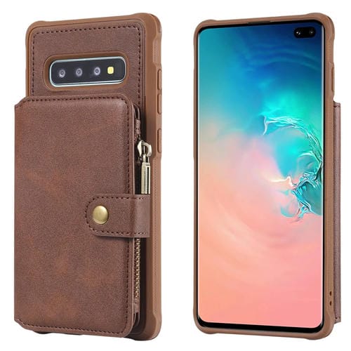 Estuche Protector Galaxy S10 Plus con Cremallera Función Billetera Soporte Ranuras para Tarjetas (Café)
