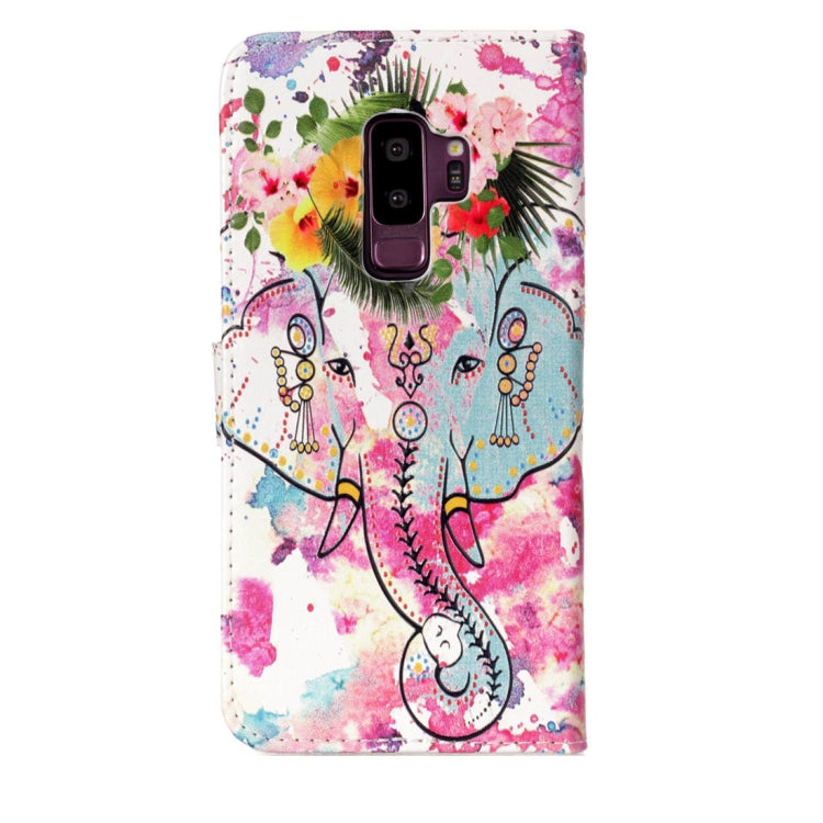Estuche de Cuero para Galaxy S9 + con Tapa Horizontal, Patrón Elefante Flores, Soporte, Ranuras y Billetera