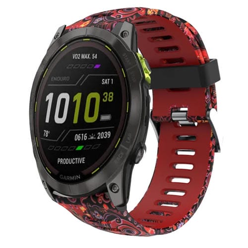 Correa de Reloj para Garmin Enduro 2 26mm Silicona Estampado Camuflaje (Rojo + Medusas)