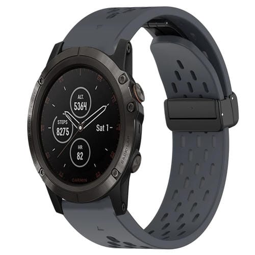 Correa de Silicona para Garmin Fenix 5X Plus con Orificio y Hebilla Plegable de 26mm (Gris Oscuro)