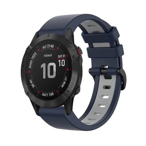 Correa Silicone Sports Band para Garmin Fenix 6 Pro 22mm (Azul Oscuro+Gris)