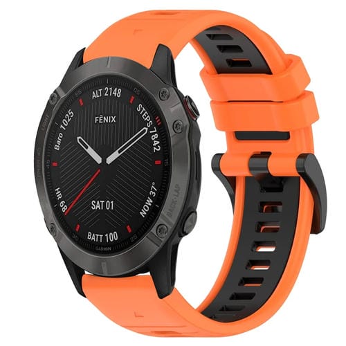 Correa para Garmin Fenix 6 Sapphire GPS 22mm Silicona Deportiva Bicolor (Naranja + Negro)