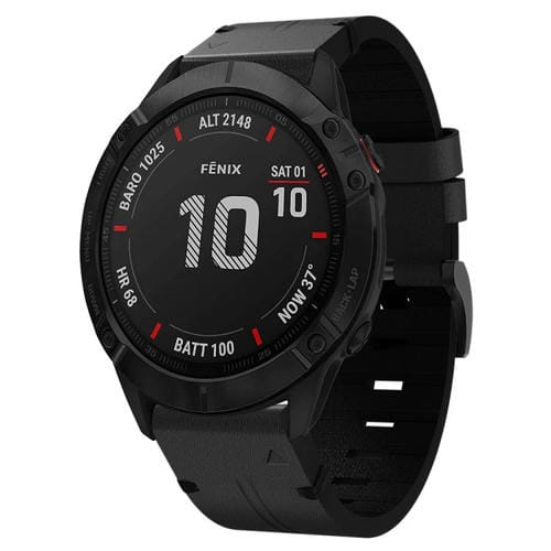 Correa de Reloj para Garmin Fenix 6X 26mm con Hebilla de Acero y Cuero (Negro)