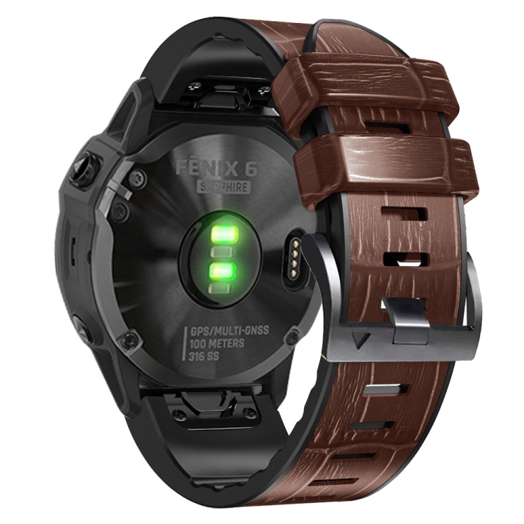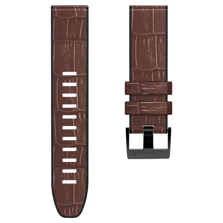 Correa para Garmin Fenix 7/6/5 silicona y cuero textura cocodrilo (Café)