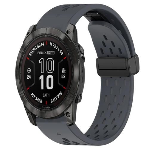 Correa de Reloj Silicona Garmin Fenix 7X 26mm con Orificio y Hebilla Plegable (Gris Oscuro)