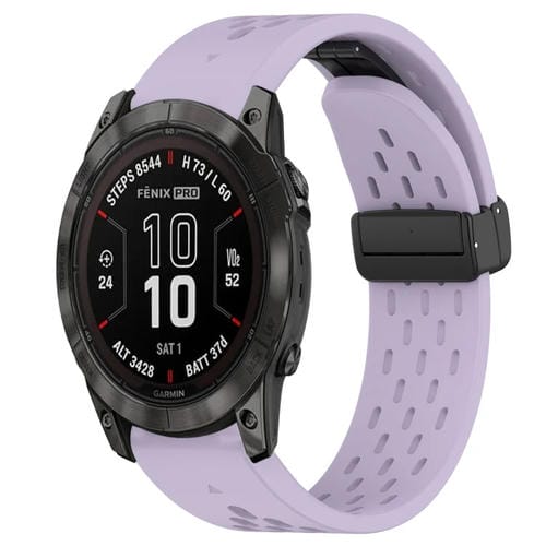 Correa de Reloj Silicona para Garmin Fenix 7X 26mm con Orificio y Hebilla Plegable (Púrpura)