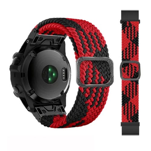 Correa de Reloj para Garmin Fenix 7X Elasticidad Trenzada Nailon Ajustable (Rojo Negro)