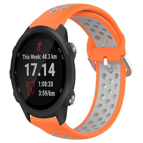 Correa de Reloj Silicona para Garmin Forerunner 245 20mm Deportiva Transpirable Perforada (Naranja + Gris)