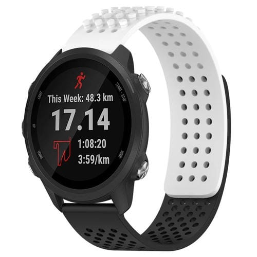 Correa de Reloj Silicona para Garmin Forerunner 245 con Puntos 3D Transpirables y Orificios de 20mm (Blanco + Negro)