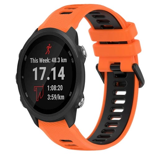 Correa para Garmin Forerunner 245 Music 20mm Silicona Deportiva Bicolor (Naranja + Negro)