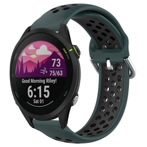 Correa de Reloj Silicona Deportiva para Garmin Forerunner 255 22mm (Verde Oliva + Negro)