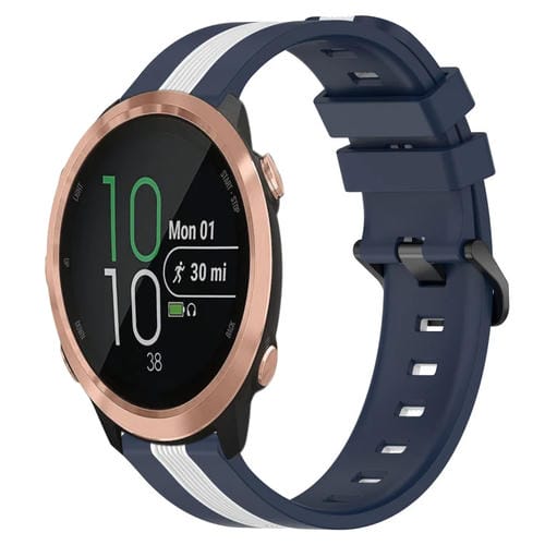 Banda de Reloj Garmin Forerunner 645 Music 20mm Silicona Dos Colores Vertical (Azul + Blanco)