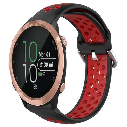 Banda de Reloj para Garmin Forerunner 645 Music 20mm silicona deportiva transpirable perforada (Negro + Rojo)