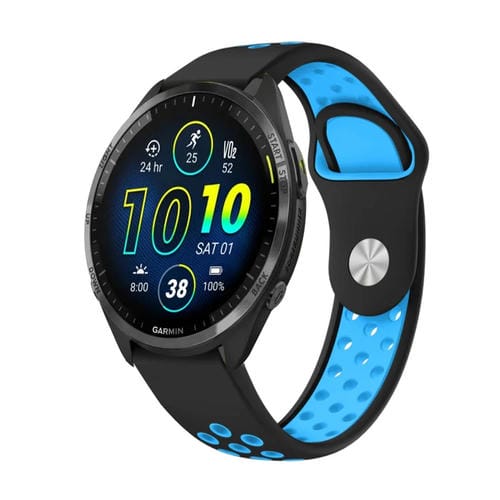 Banda de Reloj para Garmin Forerunner 965 22mm Sports Silicona Transpirable (Negro + Azul)