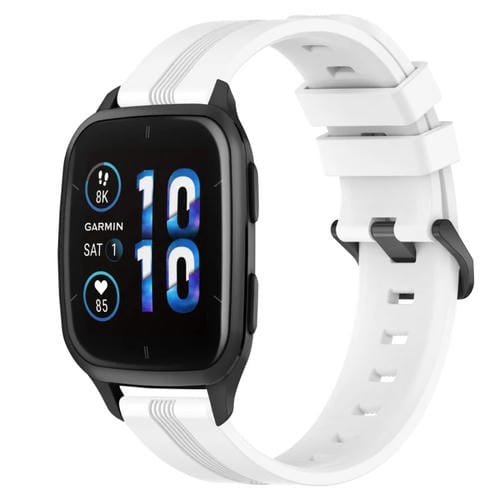 Banda de Reloj de Silicona para Garmin Forerunner Sq2 20mm con Rayas Cóncavas (Blanco)