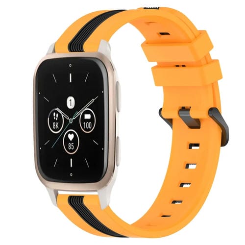Banda de Reloj Silicona para Garmin Forerunner Sq2 Music 20mm Dos Colores Vertical (Amarillo + Negro)