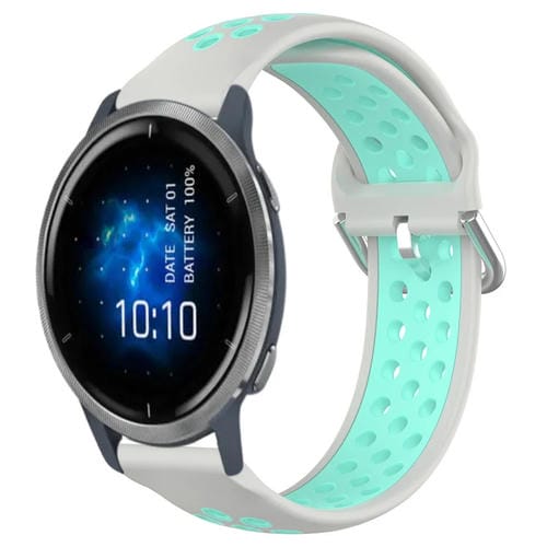 Correa de Reloj para Garmin Venu 2 22mm Silicona Deportiva Transpirable Perforada (Gris + Pato de Agua)