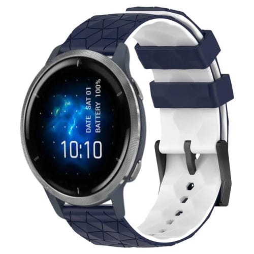 Banda de Reloj de Silicona para Garmin Venu 2 22mm con Patrón de Fútbol (Azul Medianoche + Blanco)