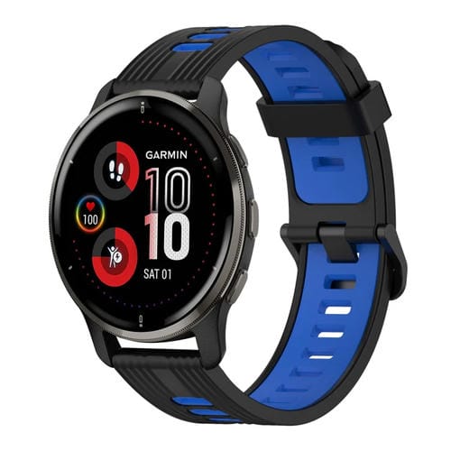 For Garmin Venu 2 Plus 20mm Two-color Pattern Silicone Watch Band (Black+Blue)
