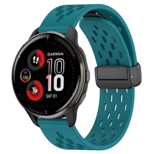 Correa de Reloj para Garmin Venu 2 Plus de Silicona con Cierre Magnético Plegable de 20mm (Verde Oculto)