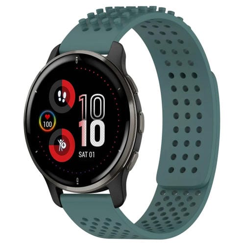 Correa de Silicona para Garmin Venu 2 Plus con Puntos 3D Transpirables y Orificios de 20mm (Verde Oliva)