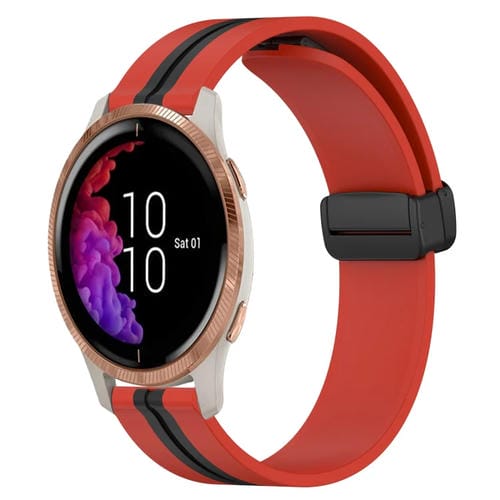 Correa de Silicona para Garmin Venu con Cierre Magnético Plegable de 20mm (Rojo + Negro)