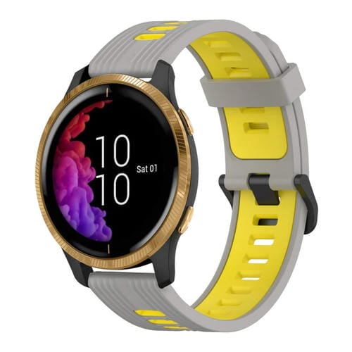 Banda de Reloj silicona para Garmin Venu patrón vertical 20mm (Gris+Amarillo)