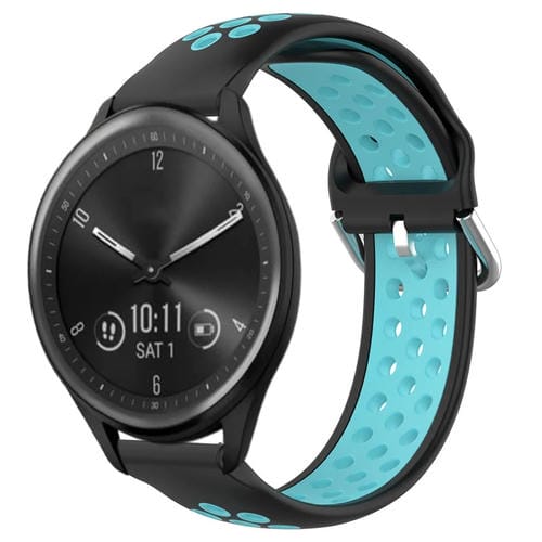 Banda de Reloj Garmin Vivomove Sport 20mm Silicona Deportiva Transpirable Perforada (Negro + Azul)