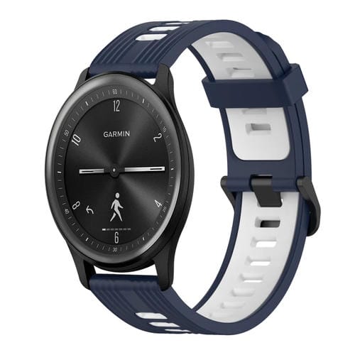 Banda de Reloj de Silicona para Garmin Vivomove Sport 20mm Patrón Vertical Dos Colores (Azul Oscuro+Blanco)