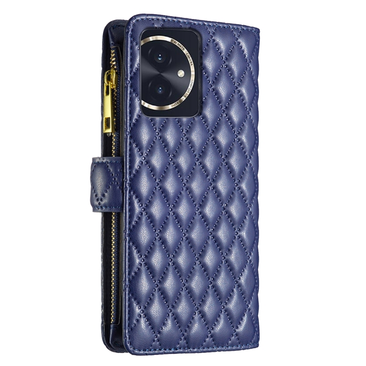 Funda de Cuero para Honor 100 Diamond Lattice con Tapa y Zipper Wallet (Azul)