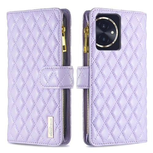 Funda de Cuero para Honor 100 Diamond Lattice Zipper Wallet con Tapa (Púrpura)