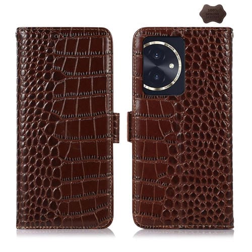Funda para Honor 100 de Piel de Vaca con Capa Superior de Cocodrilo (Marrón)
