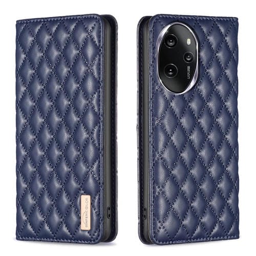 Funda para Honor 100 Pro con Tapa de Cuero Magnético y Diseño Diamond Lattice (Azul)
