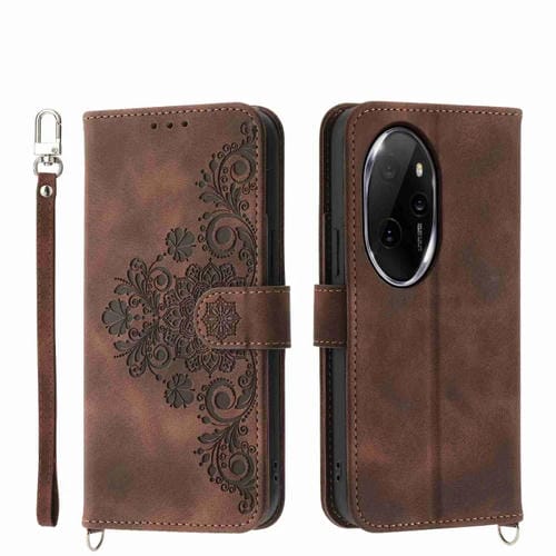 For Honor 100 Pro Embossed Flower Skin-touch Leather Wallet Phone Case (Brown)