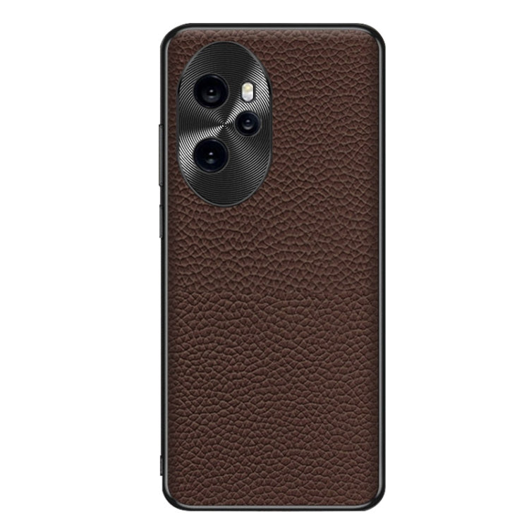 Funda de Teléfono Honor 100 Pro Textura Litchi Cuero Genuino (Café)