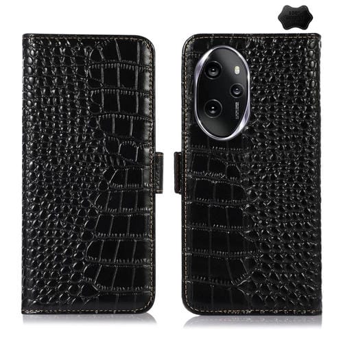 Funda para Honor 100 Pro de Piel de Vaca con Capa Superior de Cocodrilo (Negro)