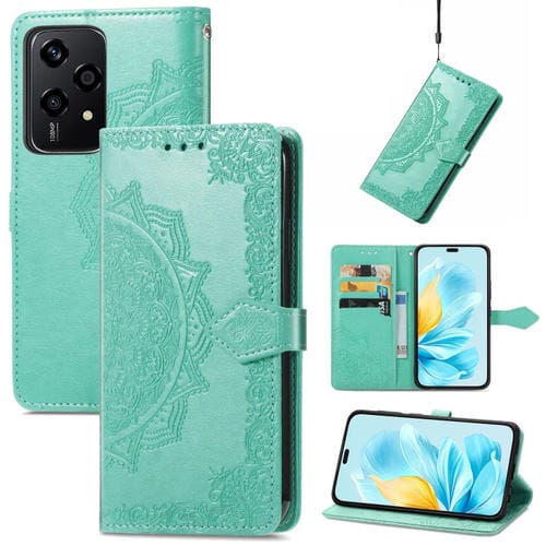 Funda para Honor 200 Lite de Cuero con Relieve de Flores Mandala (Verde)