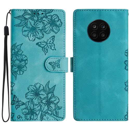 Funda para Honor 50 Lite Cherry Blossom Butterfly Skin Feel de PU en Relieve (Verde)