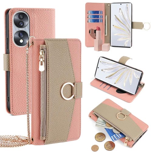 Funda Cruzada de Cuero para Honor 70 con Textura Litchi (Rosa)