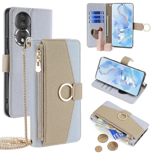 Funda Cruzada de Cuero para Honor 80 con Textura Litchi (Azul)