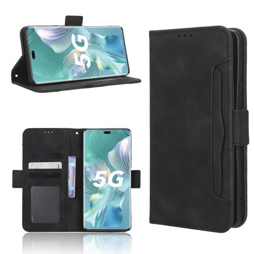 Funda de Cuero para Honor 80 Pro 5G con Textura Becerro y Ranuras para Tarjetas (Negro)