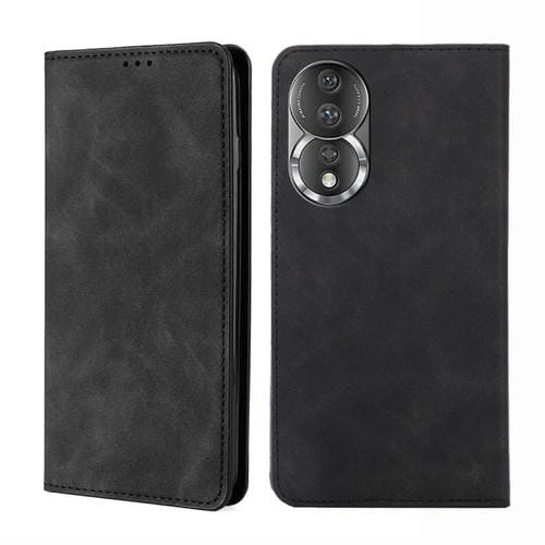 Funda para Honor 80 Skin Feel Flip Horizontal Magnética de Cuero (Negro)