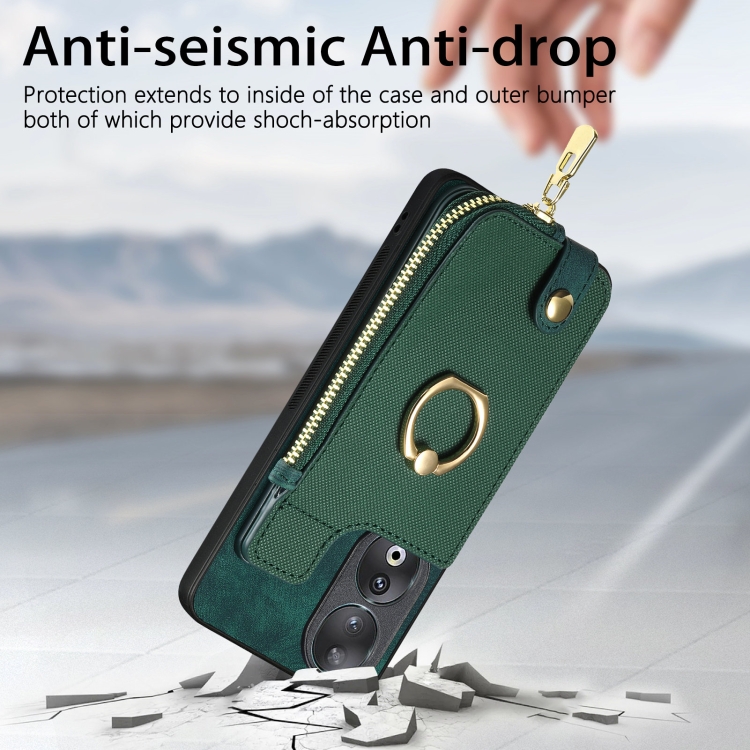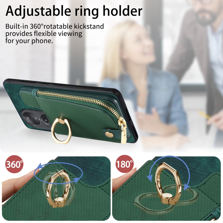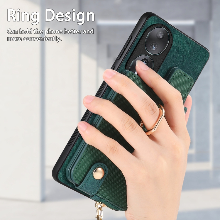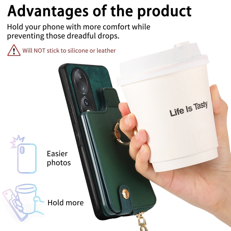 Funda para Honor 90 con Anillo de Cuero Cruzado, Cremallera Vertical y Billetera Trasera (Verde)