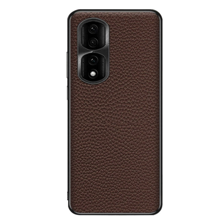 Funda para Honor 90 Pro de Cuero Genuino con Textura Litchi (Café)