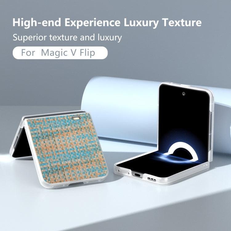 Estuche para Honor Magic V Flip de PU con Textura de Celosía y Marco Translúcido Esmerilado (Azul)