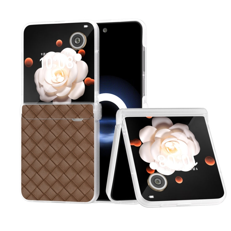 Estuche para Honor Magic V Flip de PU con Textura Tejida y Marco Translúcido Esmerilado (Marrón)