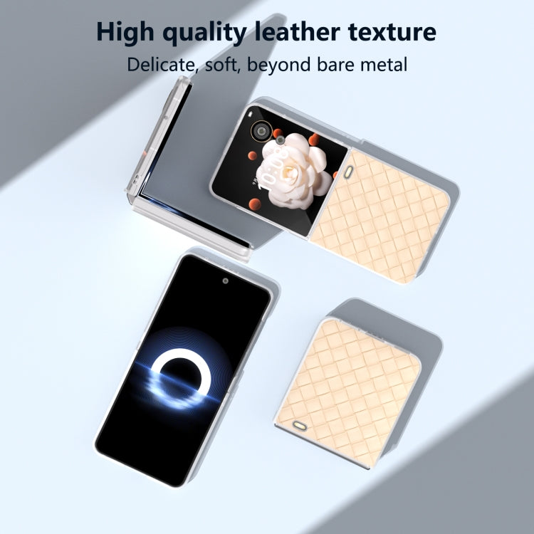 Estuche para Honor Magic V Flip de PU con Textura Tejida y Marco Translúcido Esmerilado (Beige)