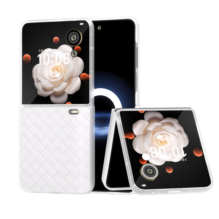 Estuche para Honor Magic V Flip de PU con Textura Tejida y Marco Translúcido Esmerilado (Blanco)