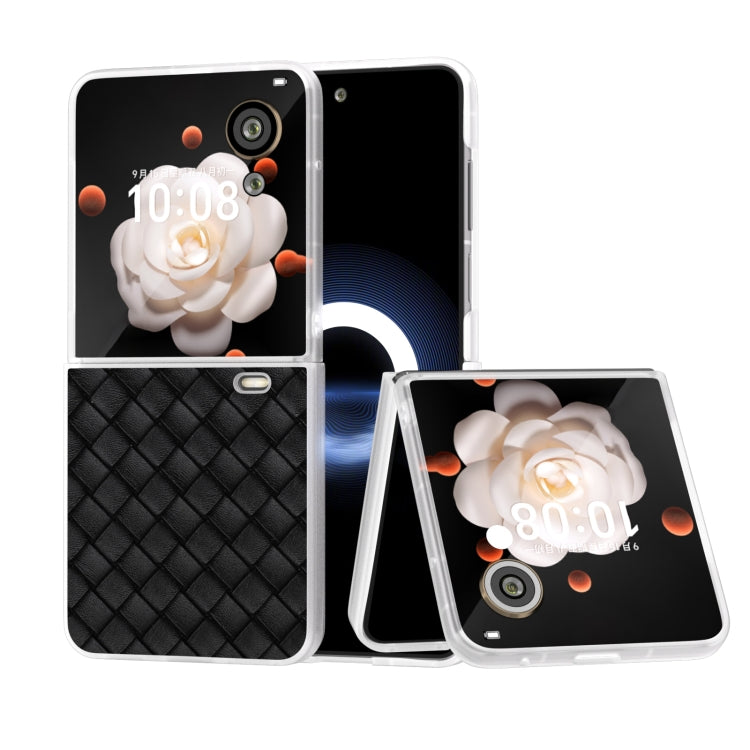 Estuche para Honor Magic V Flip de PU con Textura Tejida y Marco Translúcido Esmerilado (Negro)